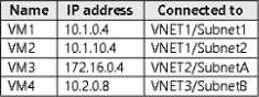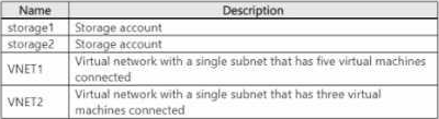 • The virtual machines connected to VNET1 must be able to communicate with the virtual machines connected to VNET2 by using the Microsoft backbone.