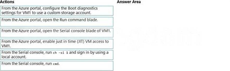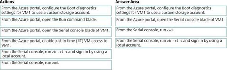 You have an Azure virtual machine named VM1 that runs Windows Server. VM1 has boot diagnostics configured to use a managed storage account.