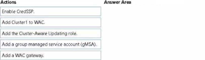 You need to configure Cluster-Aware Updating (CAU) on the cluster by using Windows Admin Center (WAC).