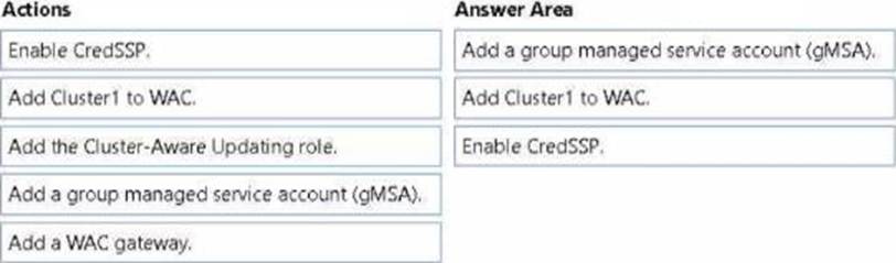 Which three actions should you perform in sequence? To answer, move the appropriate actions from the list of actions to the answer area and arrange them in the correct order.