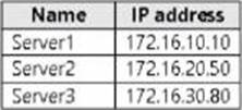 The domain contains servers that run Windows Server as shown in the following table.