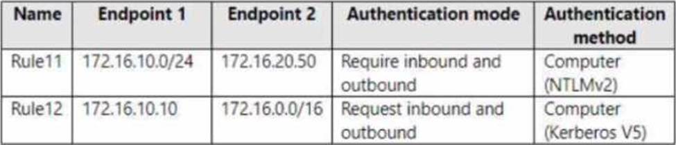 Server1 has the connection security rules shown in the following table.