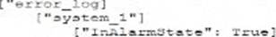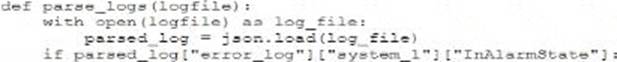 The code function provided in the question seems tobe designed to parse JSON formatted logs to check for an alarm state.