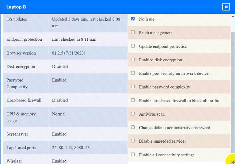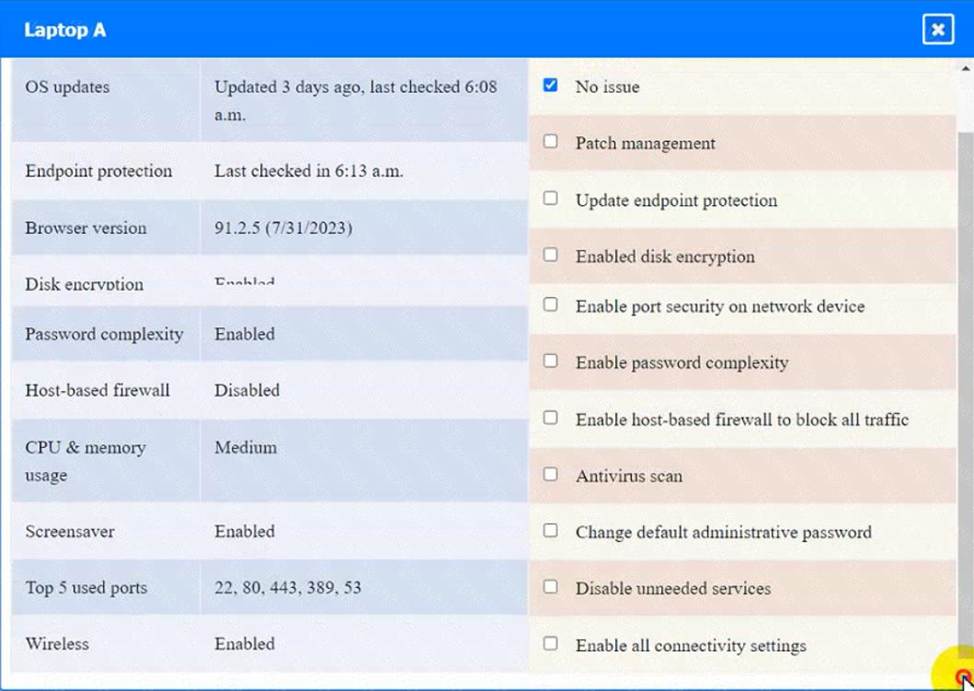 This option will install the updates that are available for Laptop A and ensure that it has the most recent security patches and bug fixes. This will comply with the requirement and also improve the performance and stability of Laptop