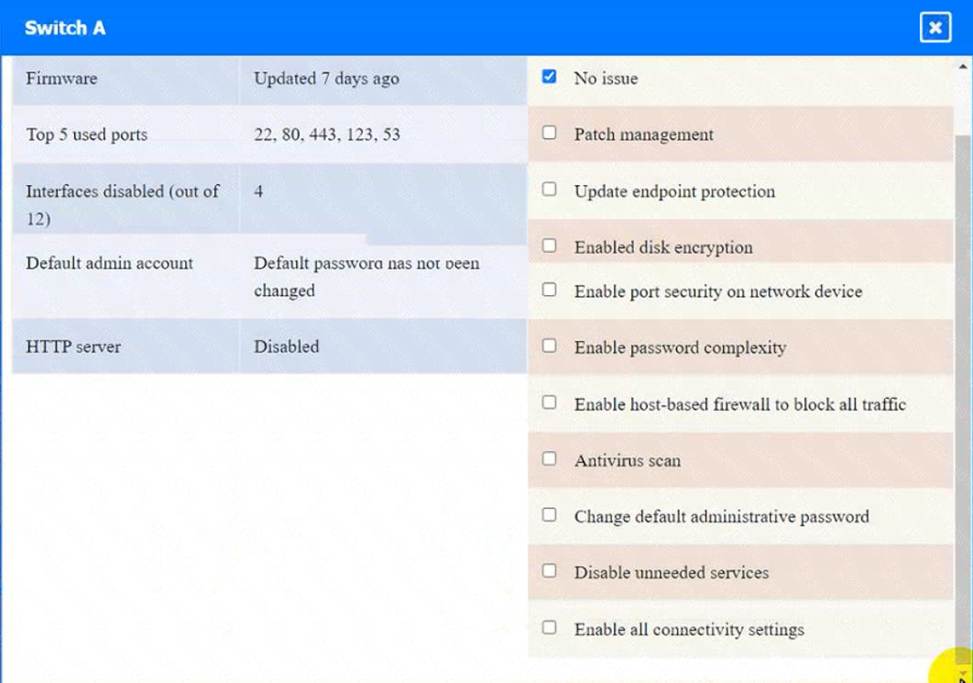 Switch A: No issue found. The Switch A is configured correctly and meets the requirements.