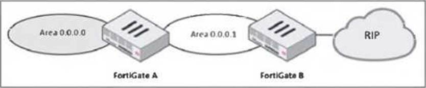 ● FortiGate B is in OSPF Area 0.0.0.1 and is connected to an RIP network.