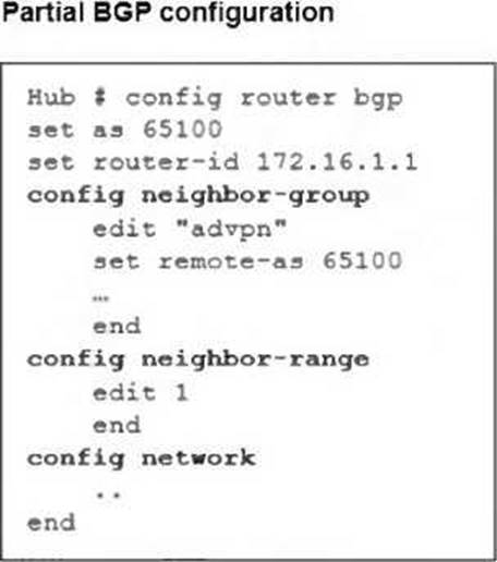 ● The advpn neighbor-group is already defined in the configuration, and assigning it to the neighbor-range ensures consistent BGP settings for all spoke neighbors.