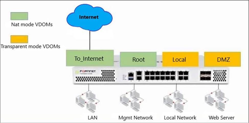 C. Inter-VDOM links are required to allow traffic between the Local and DMZ VDOMs. (transparent-transparent)