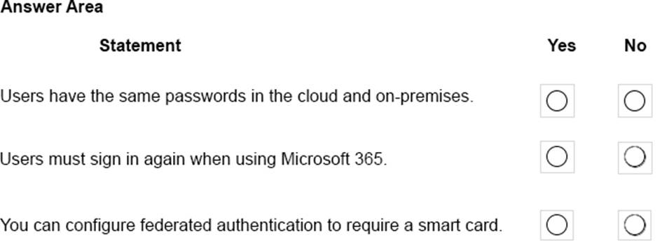 You are a Microsoft 365 administrator for a company. The company implements federated authentication and Azure AD Connect.