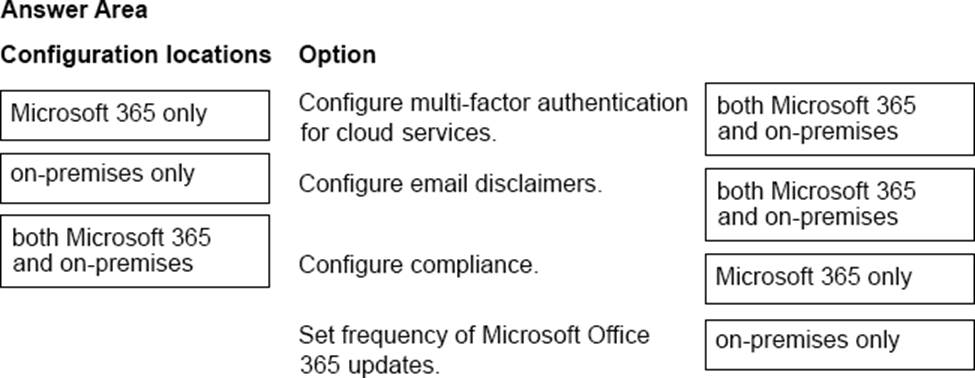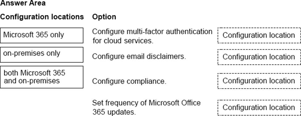Match each item to the location where it will be managed. To answer, drag the appropriate item from the column on the left to its location on the right. Each item may be used once, more than once, or not at all. NOTE: Each correct selection is worth one point.