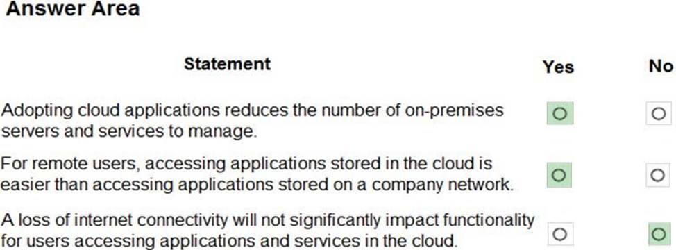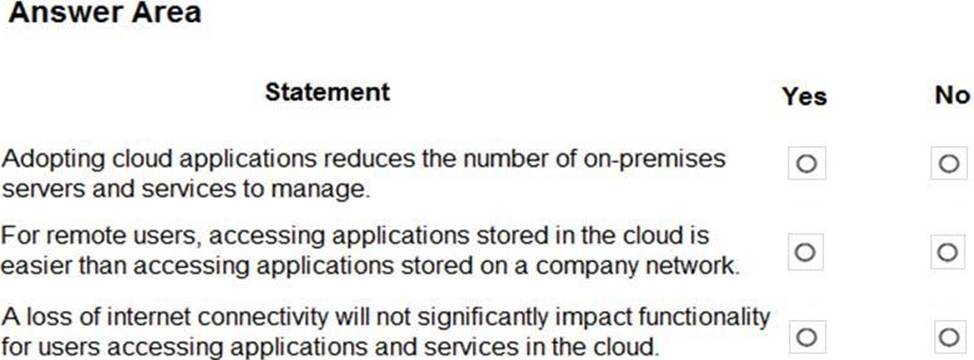 For each of the following statements, select Yes if the statement is true. Otherwise, select No. NOTE: Each correct selection is worth one point.