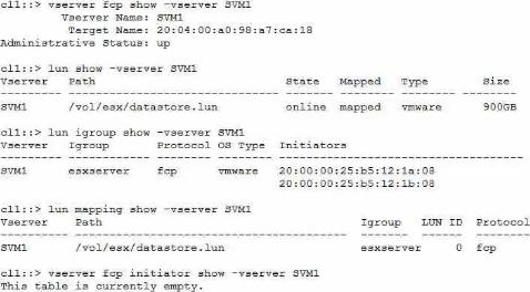 Your customer wants to access a LUN on a FAS 8300 system from a VMware ESXi server through the FC protocol. They already created a new SVM, volume. LUN, and igroup for this purpose. The customer reports that the server's FC HBA port Is online, but the LUN does not show up.