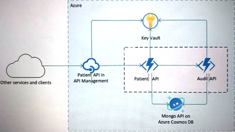 A customer uses Azure to develop a mobile app that will be consumed by external users as shown in the following exhibit.