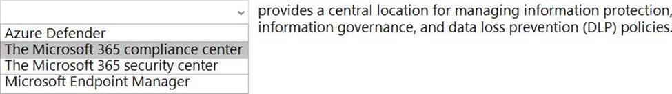 Reference: https://docs.microsoft.com/en-us/microsoft-365/compliance/microsoft-365-compliance-center?view=o365-worldwide
