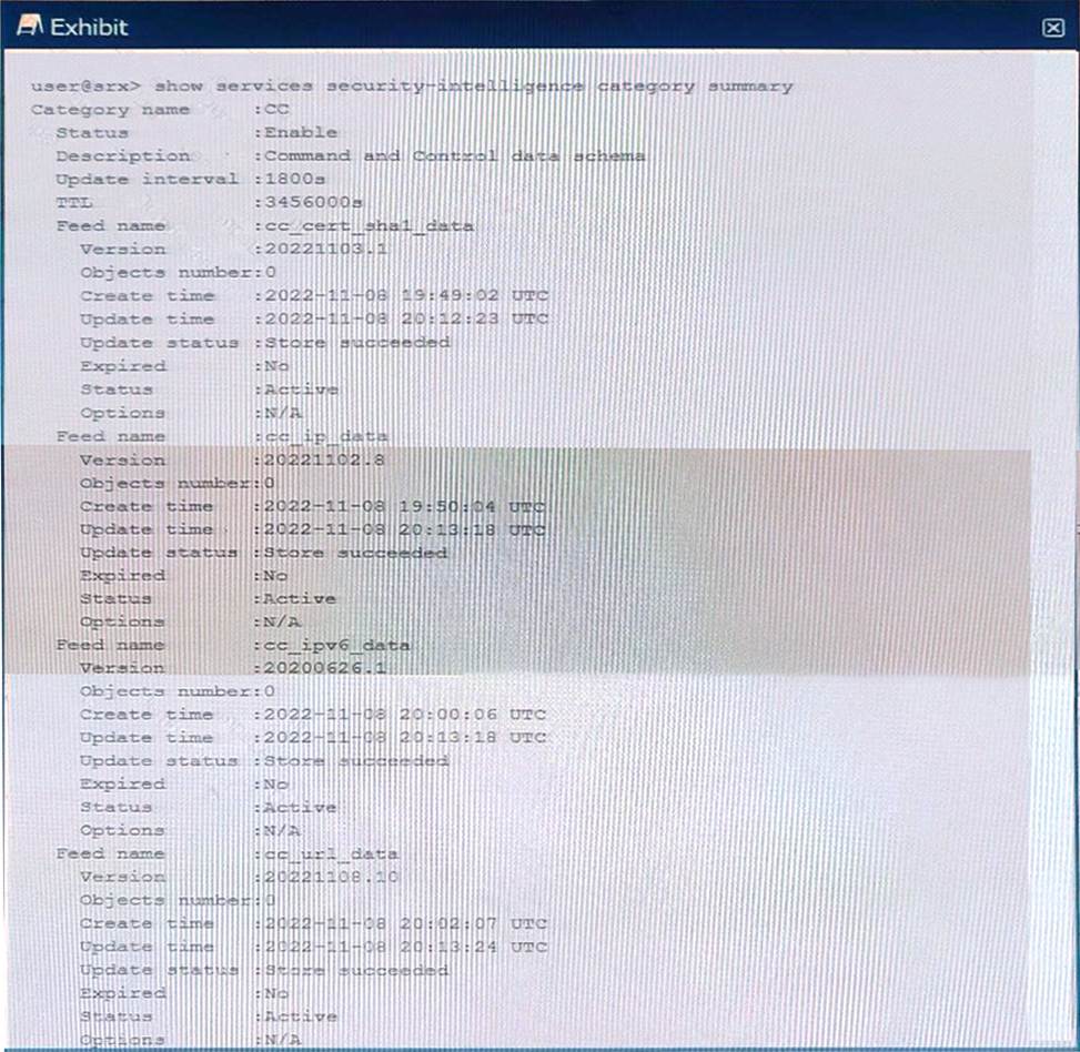 According to the Juniper Networks JNCIS-SEC Study Guide, when you set up your command-and-control (C&C) category with Juniper ATP Cloud, all of the feeds will initially have zero objects in them. This is normal, as it can take a few minutes for the feeds to download. No action is required in this scenario and you will notice the feeds start to populate with objects once the download is complete.