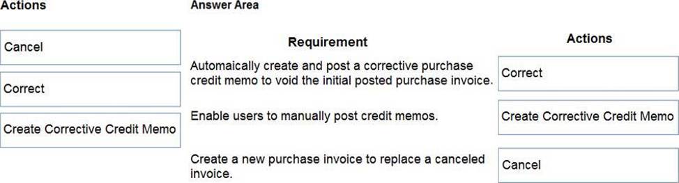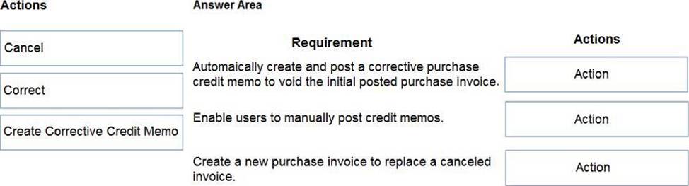 Which actions should you perform? To answer, drag the appropriate actions to the correct requirements. Each action may be used once, more than once, or not at all. You may need to drag the split bar between panes or scroll to view content. NOTE: Each correct selection is worth one point.