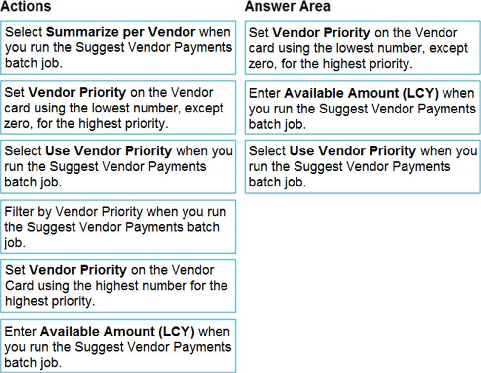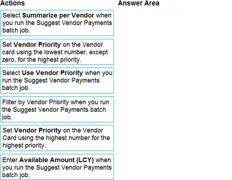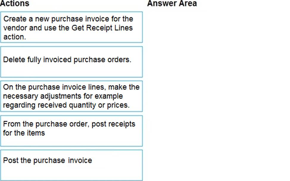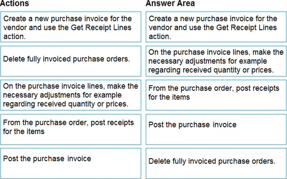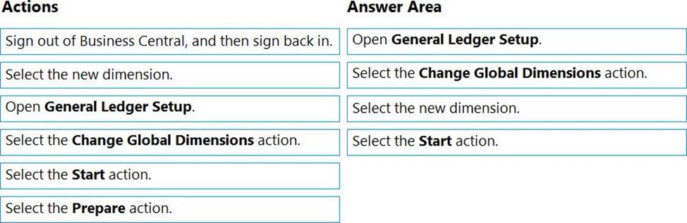 appropriate actions from the list of actions to the answer area and arrange them in the correct order.