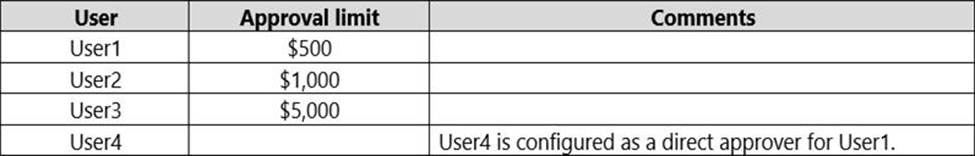 You create and enable an approval workflow. You configure the workflow to use the approver limit type Approver Chain.