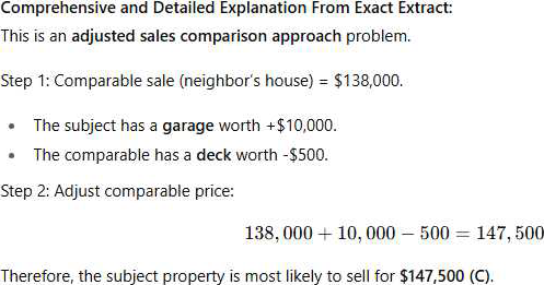 Therefore, the subject property is most likely to sell for $147,500 (C).