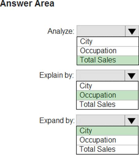 Which type of visualization and which feature should you use? To answer, select the appropriate options in the answer area. NOTE: Each correct selection is worth one point.