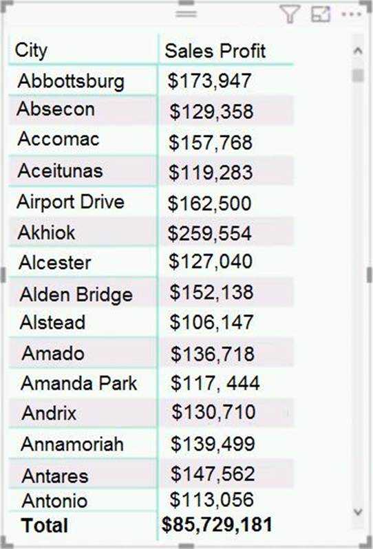 You need to ensure that the visual shows only the 10 cities that have the highest sales profit.