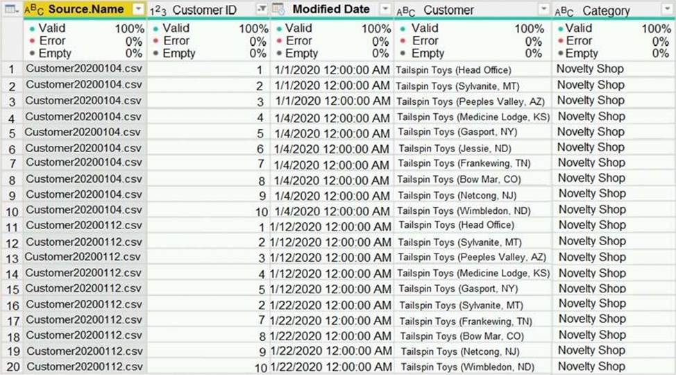 You have a query named Customer that imports CSV files from a data lake.
