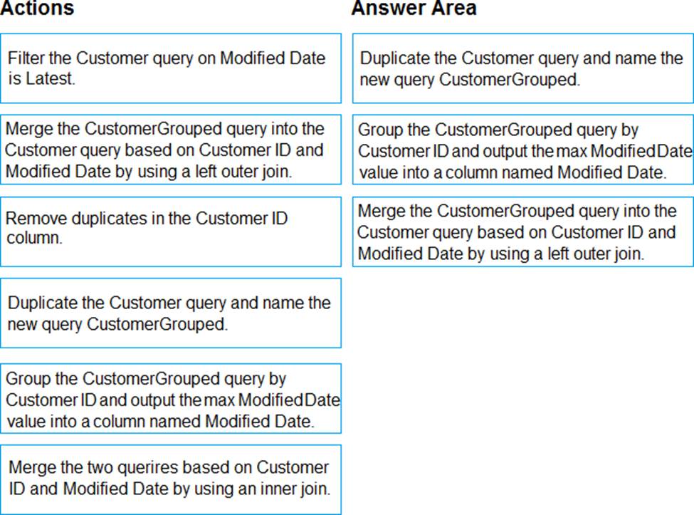 Which three actions should you perform in sequence? To answer, move the appropriate actions from the list of actions to the answer area and arrange them in the correct order.