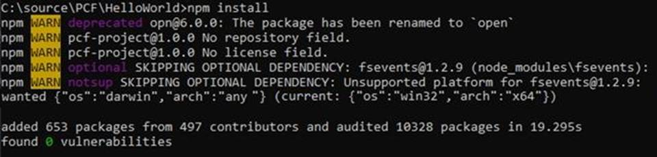 Once ‘init’ sets up the basic folder, as a next step install all the PCF control dependencies using ‘npm