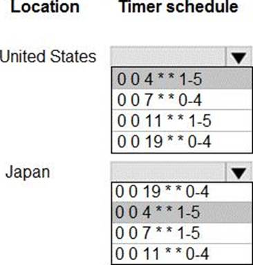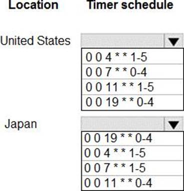 Reference: https://docs.microsoft.com/en-us/azure/azure-functions/functions-bindings-timer?